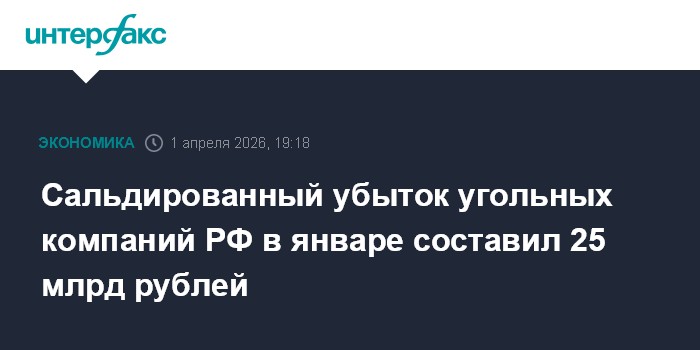 Москва. 1 апреля. INTERFAX.RU - Сальдированный убыток угольных компаний РФ за первый месяц этого года составил 25 млрд руб. против убытка в 6,2 млрд руб. годом ранее. Об этом сообщил Росстат в среду (приводятся данные, раскрывавшиеся в январе 2025 года, Росстат эту цифру для сравнения в своем докладе не дает - ИФ).