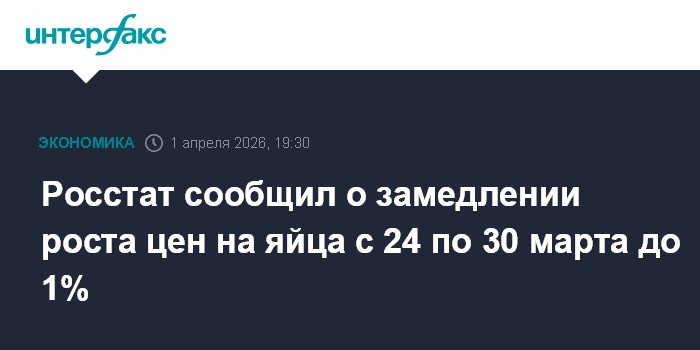 Москва. 1 апреля. INTERFAX.RU - Цены на яйца в РФ с 24 по 30 марта повысились на 1%, сообщил Росстат в среду.