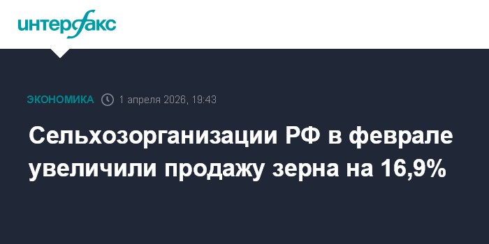 Сельхозорганизации РФ в феврале увеличили продажу зерна на 16,9%