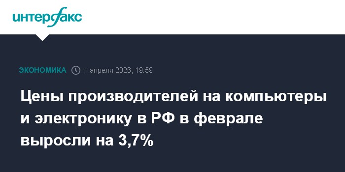 Москва. 1 апреля. INTERFAX.RU - Цены производителей компьютеров, электронных и оптических изделий на их продукцию в феврале 2026 года увеличились на 3,7% по сравнению с февралем 2025 года, сообщает Росстат.