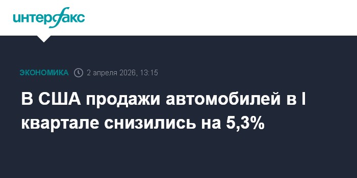В США продажи автомобилей в I квартале снизились на 5,3%