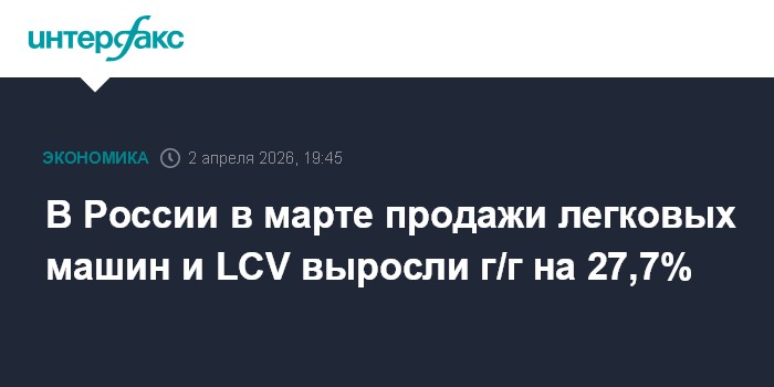 Москва. 2 апреля. INTERFAX.RU - Российский рынок новых легковых и легких коммерческих (LCV) автомобилей в марте 2026 года показал лучший результат за квартал и с начала года: вырос в годовом выражении на 27,7%, до 111 753 единиц, а по сравнению с февралем текущего года - на 29,4%.