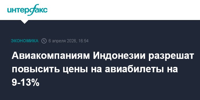 Москва. 6 апреля. INTERFAX.RU - Власти Индонезии разрешат авиакомпаниям повысить цены на авиабилеты на 9-13% путем увеличения топливного сбора, сообщил на брифинге министр экономики страны Аирлангга Хартарто.
