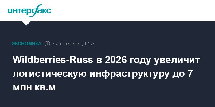 Москва. 8 апреля. INTERFAX.RU - Объединенная компания Wildberries-Russ (ООО "РВБ") планирует нарастить площадь логистических объектов по итогам 2026 года до 6,9 млн кв.м.