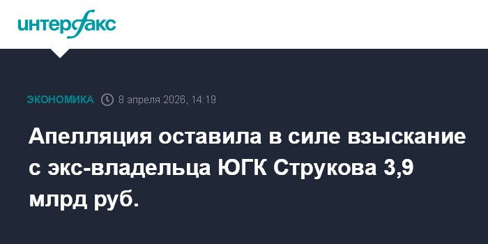 Апелляция оставила в силе взыскание с экс-владельца ЮГК Струкова 3,9 млрд руб.