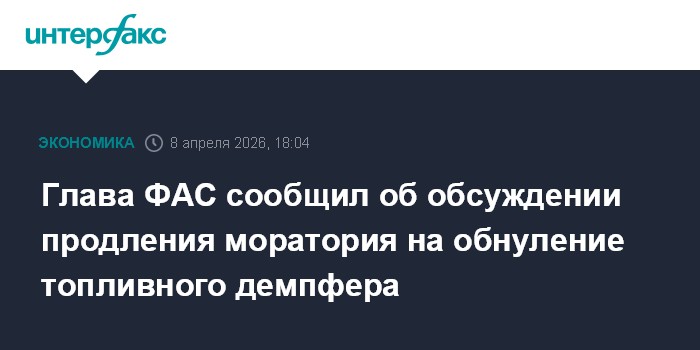 Москва. 8 апреля. INTERFAX.RU - Заинтересованные министерства и ведомства обсуждают продление в РФ моратория на обнуление топливного демпфера в качестве одного из механизмов стабилизации рынка, заявил журналистам руководитель Федеральной антимонопольной службы (ФАС) России Максим Шаскольский.