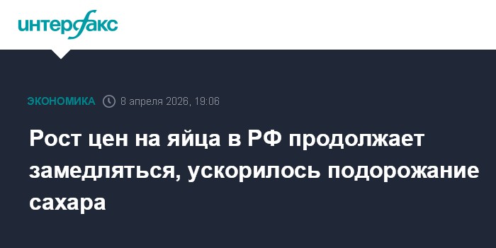 Рост цен на яйца в РФ продолжает замедляться, ускорилось подорожание сахара