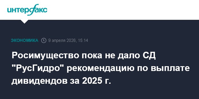 Москва. 9 апреля. INTERFAX.RU - Совет директоров ПАО "РусГидро" пока не получил от основного акционера компании в лице Росимущества рекомендации о размере, сроках и форме выплаты дивидендов по результатам 2025 г., сообщил энергохолдинг.