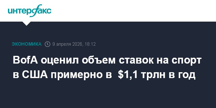 Москва. 9 апреля. INTERFAX.RU - Объем ставок на спортивные события в США достигает порядка $1,1 трлн в год, по оценке аналитиков Bank of America, сообщает Bloomberg со ссылкой на их отчет.
