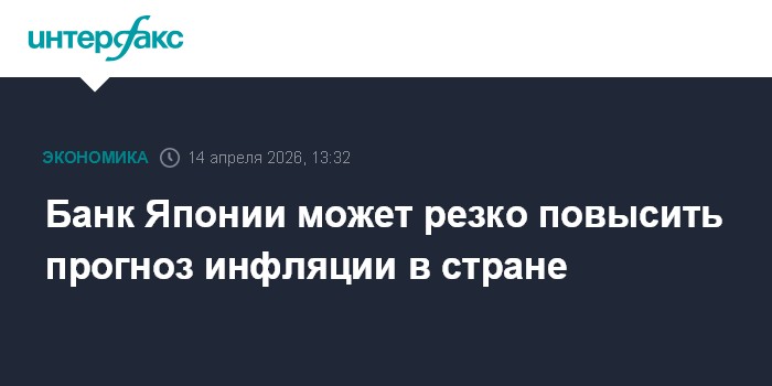 Москва. 14 апреля. INTERFAX.RU - Банк Японии, вероятно, рассмотрит резкое повышение прогноза инфляции в стране на текущий финансовый год на очередном заседании в апреле, чтобы отразить в нем повышение цен на нефть, сообщает Bloomberg со ссылкой на информированные источники.