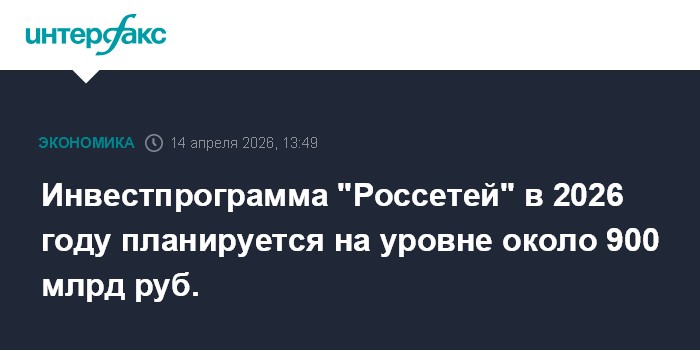 Инвестпрограмма "Россетей" в 2026 году планируется на уровне около 900 млрд руб.