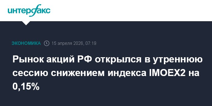 Рынок акций РФ открылся в утреннюю сессию снижением индекса IMOEX2 на 0,15%