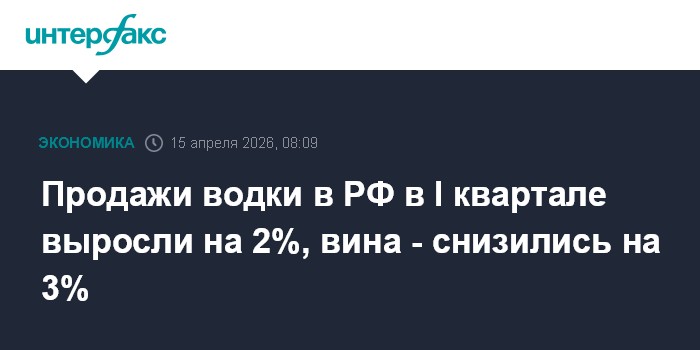 Москва. 15 апреля. INTERFAX.RU - Розничная продажа водки в январе-марте этого года составила 17,4 млн декалитров (дал), что на 2% больше, чем за аналогичный период 2025 года, сообщает Росалкогольтабакконтроль.