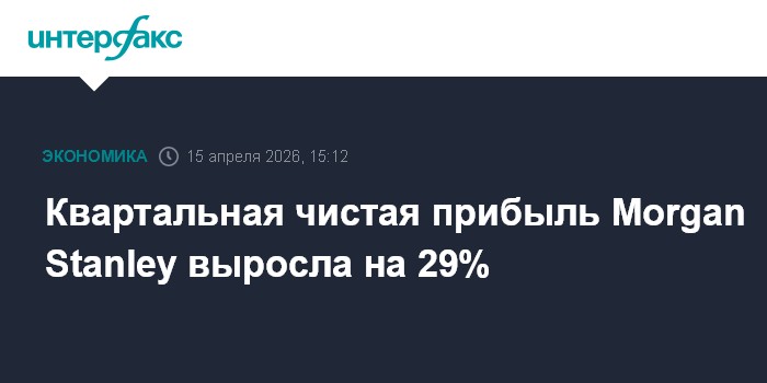 Москва. 15 апреля. INTERFAX.RU - Morgan Stanley, один из крупнейших банков США, увеличил чистую прибыль в первом квартале 2026 года на 29%, выручку - на 16%.