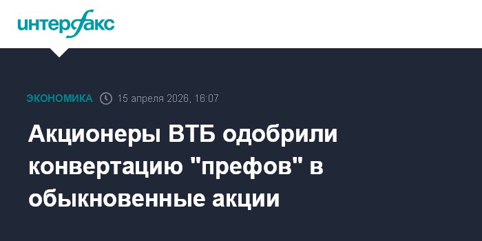 Москва. 15 апреля. INTERFAX.RU - Акционеры ВТБ приняли решение о размещении дополнительных обыкновенных акций банка ВТБ в рамках процесса конвертации привилегированных акций первого и второго типа, говорится в материалах банка.