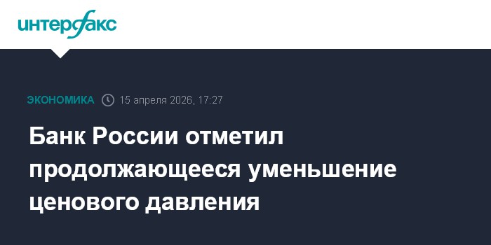 Москва. 15 апреля. INTERFAX.RU - Ценовое давление, по оперативным индикаторам, продолжает уменьшаться, говорится в комментарии Банка России.