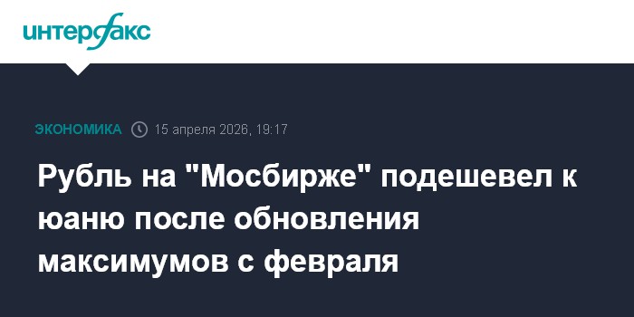 Москва. 15 апреля. INTERFAX.RU - На торгах в среду на "Московской бирже" рубль подешевел к юаню после того, как на открытии сессии обновил максимальные отметки с середины февраля.