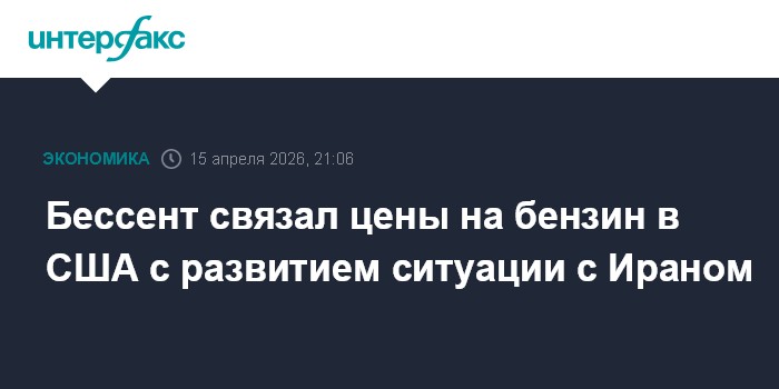 Москва. 15 апреля. INTERFAX.RU - Глава Минфина США Скотт Бессент оптимистично настроен относительно ситуации с ценами на бензин в Штатах, которую он увязал с тем, как пройдут переговоры Вашингтона и Тегерана.