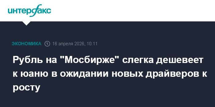 Москва. 16 апреля. INTERFAX.RU - На открытии торгов на "Московской бирже" в четверг рубль немного дешевеет к юаню после сильного укрепления в предыдущие дни и в ожидании новых драйверов к росту.