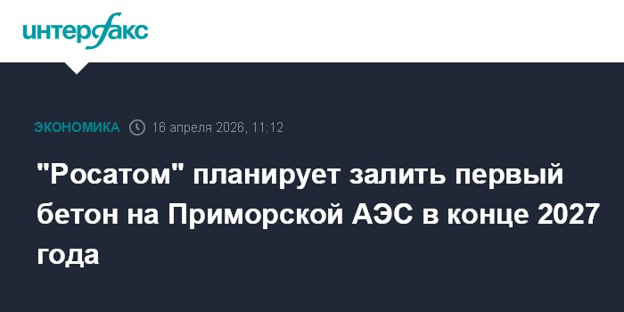 Москва. 16 апреля. INTERFAX.RU - Начало основного строительства Приморской АЭС на Дальнем Востоке запланировано на конец 2027 года. Об этом сообщил первый замглавы концерна "Росэнергоатом" Александр Хвалько на совещании на тему развития электроэнергетики в ДФО, проходящем в Совете Федерации.