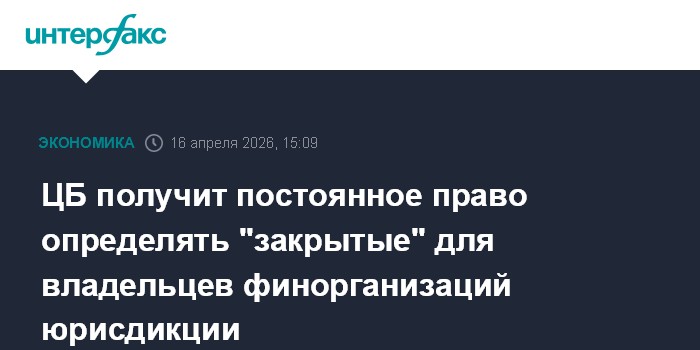 ЦБ получит постоянное право определять "закрытые" для владельцев финорганизаций юрисдикции