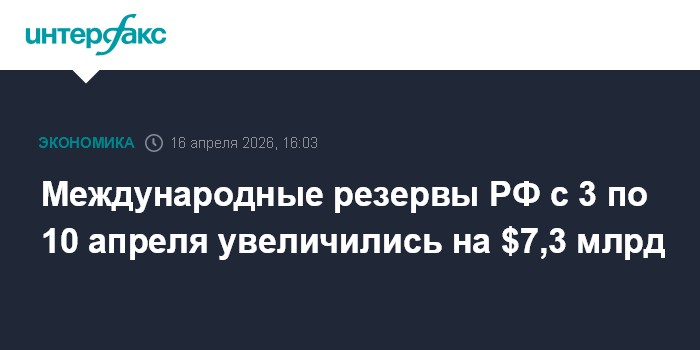 Международные резервы РФ с 3 по 10 апреля увеличились на $7,3 млрд