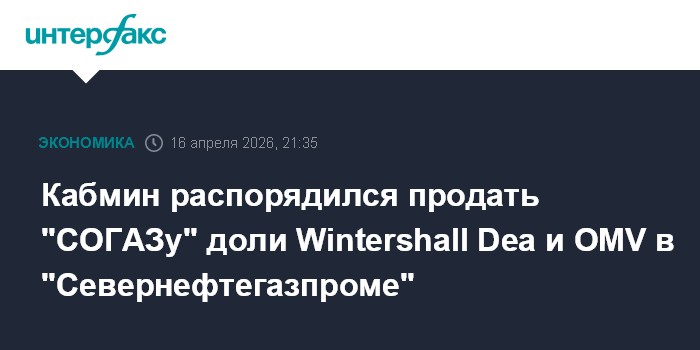 Кабмин распорядился продать "СОГАЗу" доли Wintershall Dea и OMV в "Севернефтегазпроме"