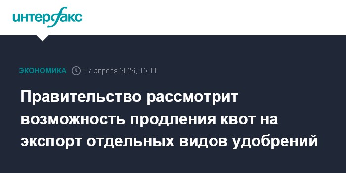 Москва. 17 апреля. INTERFAX.RU - Правительство РФ не исключает продления квот на экспорт отдельных видов удобрений.