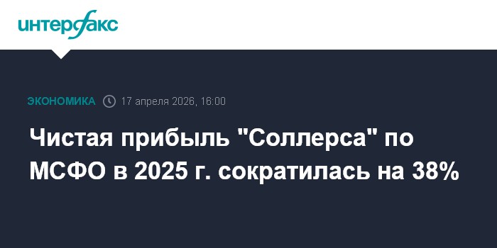 Москва. 17 апреля. INTERFAX.RU - Чистая прибыль ПАО "Соллерс" по МСФО в 2025 году снизилась на 38%, до 2,3 млрд руб., говорится в отчетности компании.