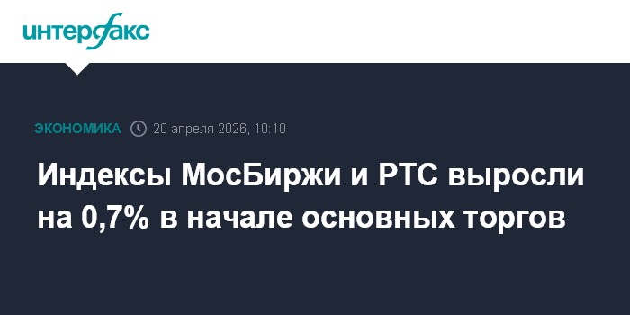 Москва. 20 апреля. INTERFAX.RU - Рынок акций РФ на старте торгов основной сессии на Мосбирже в понедельник корректируется вверх вслед за отскочившей нефтью (июньский фьючерс на Brent превысил $95 за баррель) на фоне известий о новом витке конфронтации США и Ирана в связи с судоходством в Ормузском проливе. Индексы МосБиржи и РТС за минуту торгов выросли на 0,7% во главе с бумагами нефтегазовых компаний.