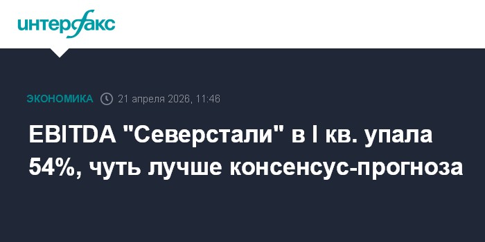 Москва. 21 апреля. INTERFAX.RU - "Северсталь" в I квартале 2026 года сократила EBITDA на 54% по сравнению с аналогичным периодом 2025 года, до 17,94 млрд рублей, говорится в сообщении компании.