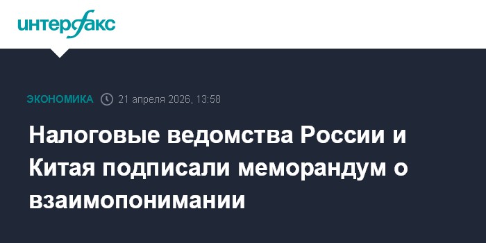 Москва. 21 апреля. INTERFAX.RU - Федеральная налоговая служба России и Государственная налоговая администрация КНР подписали меморандум о взаимопонимании, предусматривающий обмен опытом цифровой трансформации, проведение обучающих программ, а также координацию работы на международном уровне.