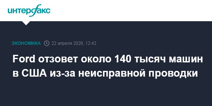 Москва. 22 апреля. INTERFAX.RU - Ford Motor отзывает в США около 140 тысяч пикапов Ford Ranger из-за проблем с проводкой, сообщило Национальное управление по безопасности дорожного движения NHTSA.