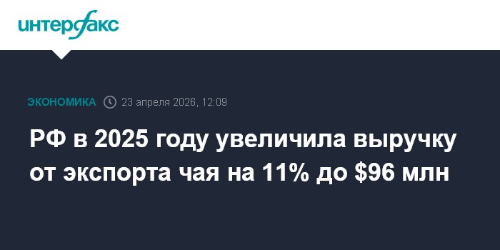 Москва. 23 апреля. INTERFAX.RU - РФ в 2025 году экспортировала чая на $96 млн, что на 11% больше, чем в 2024 году, сообщает федеральный центр "Агроэкспорт".