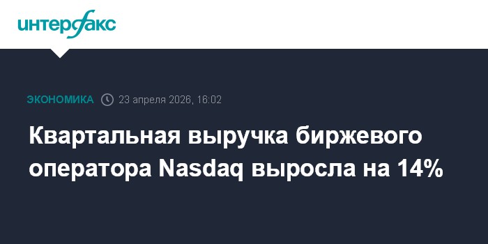 Москва. 23 апреля. INTERFAX.RU - Биржевой оператор Nasdaq Inc. в первом квартале 2026 года увеличил чистую прибыль на 31%, при этом скорректированный показатель превзошел ожидания рынка. Выручка выросла на 14% - до $1,41 млрд.
