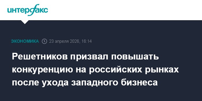 Москва. 23 апреля. INTERFAX.RU - Глава Минэкономразвития Максим Решетников заявил, что после ухода западных игроков на ряде российских рынков нужно повышать конкуренцию, и призвал сербский бизнес инвестировать в Россию. Он сказал это, выступая на сербско-российском деловом форуме в Белграде.