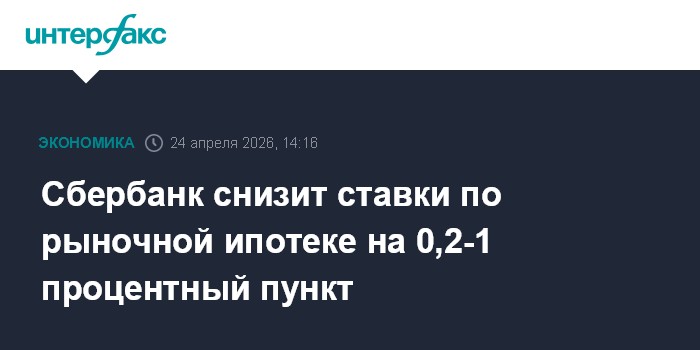 Москва. 24 апреля. INTERFAX.RU - Сбербанк с 27 апреля снижает ставки по рыночной ипотеке на 0,2-1 процентный пункт (п.п.) в зависимости от размера первоначального взноса, говорится в сообщении банка.