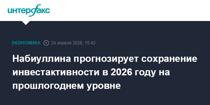 Москва. 24 апреля. INTERFAX.RU - Инвестиционная активность в России в начале года снизилась, но март-апрель уже показывают на некоторое ее восстановление, по итогам 2026 года ЦБ ждет инвестиции на уровне 2025 года, заявила глава Банка России Эльвира Набиуллина.