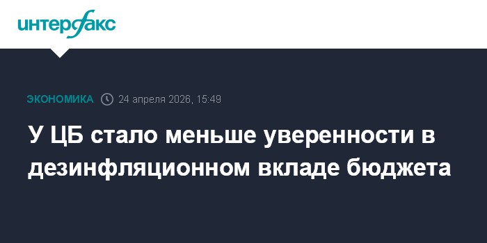 Москва. 24 апреля. INTERFAX.RU - Банк России видит риски со стороны возможных изменений параметров бюджета: уверенности в дезинфляционном вкладе бюджета, который закладывался раньше, стало меньше, заявила на брифинге глава ЦБ Эльвира Набиуллина.