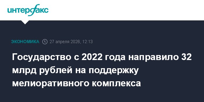 Государство с 2022 года направило 32 млрд рублей на поддержку мелиоративного комплекса
