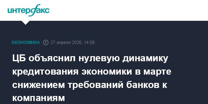 ЦБ объяснил нулевую динамику кредитования экономики в марте снижением требований банков к компаниям