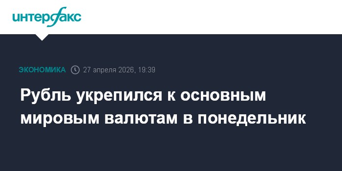 Москва. 27 апреля. INTERFAX.RU - Китайский юань умеренно снизился на Московской бирже по итогам торгов в понедельник. Рубль укрепился к основным мировым валютам благодаря растущим ценам на нефть, а также на фоне относительно "жесткой" риторики ЦБ РФ в отношении дальнейшей денежно-кредитной политики на состоявшемся в пятницу апрельском заседании регулятора.