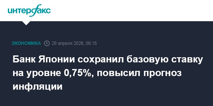 Москва. 28 апреля. INTERFAX.RU - Банк Японии сохранил ключевую процентную ставку на отметке 0,75% годовых - это максимальный уровень более чем за 30 лет (с сентября 1995 года).