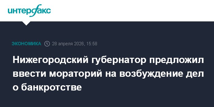 Москва. 28 апреля. INTERFAX.RU - Губернатор Нижегородской области Глеб Никитин выступает за возобновление действия в России моратория на возбуждение дел о банкротстве юрлиц и индивидуальных предпринимателей по заявлениям кредиторов.