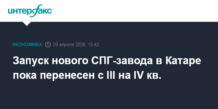 Москва. 29 апреля. INTERFAX.RU - Запуск нового завода по сжижению природного газа (СПГ) в Катаре - North Field East (NFE) -из-за конфликта на Ближнем Востоке пока откладывается с III на IV кв. 2026 года, сообщил глава TotalEnergies Патрик Пуяннэ в ходе телеконференции для инвесторов.