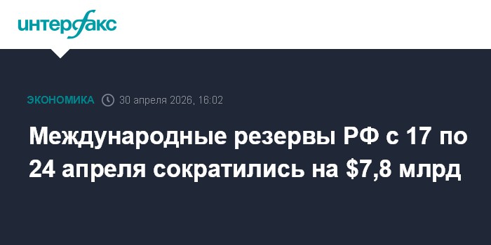 Международные резервы РФ с 17 по 24 апреля сократились на $7,8 млрд