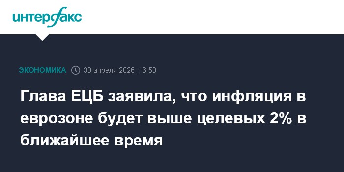 Глава ЕЦБ заявила, что инфляция в еврозоне будет выше целевых 2% в ближайшее время