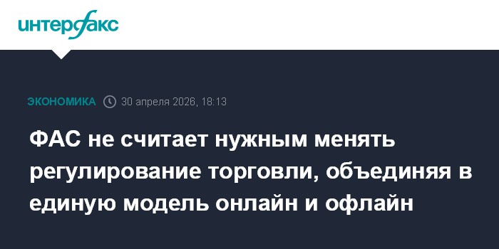 Москва. 30 апреля. INTERFAX.RU - Регулирование торговых сетей и маркетплейсов не целесообразно объединять в единый документ, считает глава Федеральной антимонопольной службы (ФАС) России Максим Шаскольский. По его мнению, это может нарушить баланс, достигнутый в отношении традиционной розницы при выработке действующего закона "О торговле", что касается онлайн-площадок, то их работа будет регламентирована вступающим в силу с 1 октября 2026 года законом "О платформенной экономике".