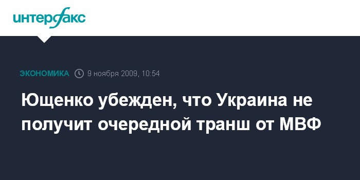 Москва. 9 ноября. INTERFAX.RU – Президент Украины Виктор Ющенко убежден, что Украина не получит очередной транш кредита от МВФ.