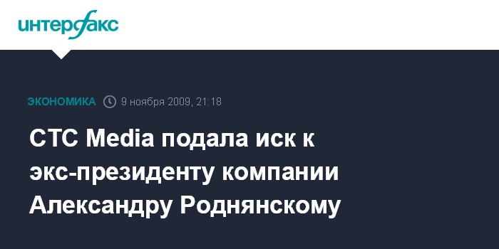 Москва. 9 ноября. INTERFAX.RU - Телевизионный холдинг СТС Media подал иски в американские суды к своему бывшему президенту и действующему члену совета директоров Александру Роднянскому, обвинив его в нарушении контрактных обязательств.